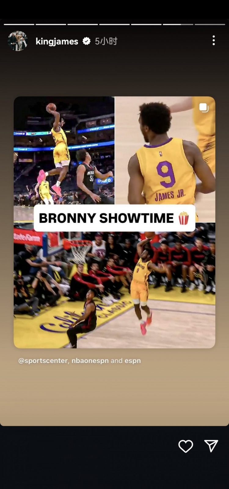 赛后,詹姆斯更新社媒,连发三条与布朗尼相关的动态。